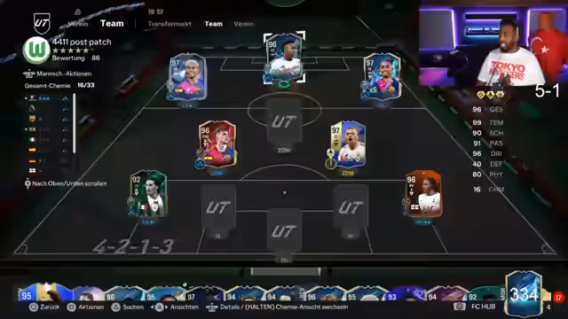 10:55:01Es geht um die Wirtschaft in FIFA Ultimate Team, wobei der Streamer über seine Coin-Bestände und mögliche Investitionen spricht. Er erwägt, Spieler wie Puteas zu verkaufen und stattdessen Lamin zu kaufen. Dabei diskutiert er auch die Frage, wo Lamin im Team spielen soll, da er und Rafinhas nicht in derselben Position spielen können. Der Streamer zeigt verschiedene Formationen, die er mit diesen Spielern ausprobieren könnte.