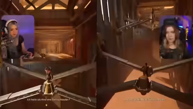 00:28:23Ein zentrales Thema des Streams ist die geplante Kooperation mit der anderen Streamerin Lena. Beide bereiten ihren gemeinsamen Stream des Spiels 'Split Fiction' vor. Dies erfordert technische Anpassungen, da sie versuchen, die Kamerabilder und Streams so zu teilen, dass jede das Bild der anderen im Chat sieht. Nach anfänglichen Problemen mit der virtuellen Webcam und der Software Video Ninja gelingt es ihnen, die Verbindung herzustellen, um eine nahtlose Interaktion während des Spiels zu ermöglichen.