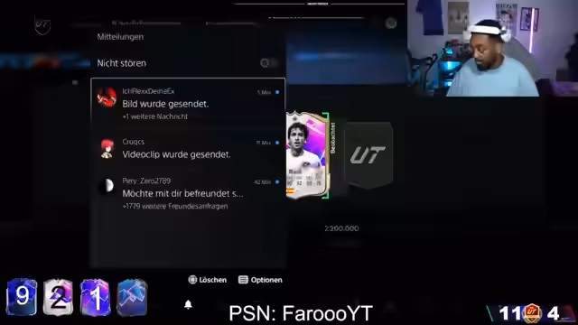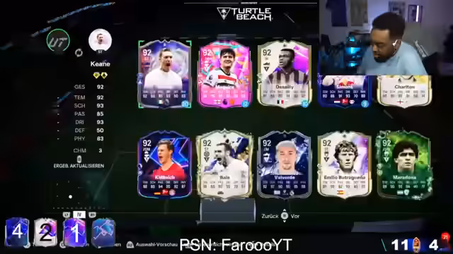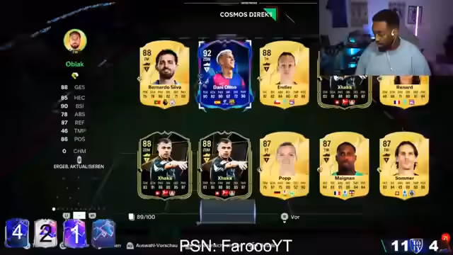 00:02:50Nachdem technische Vorbereitungen getroffen wurden, beginnt der Streamer mit der Eröffnung der 91er Dream Chaser Packs aus dem Shop. Er betont die Wichtigkeit dieser Packs für die Weekend League. Gleichzeitig wird eine Wette ausgerufen, bei der aus zwei geöffneten Packs je ein Hero- oder Icon-Spieler gezogen werden muss, um zu gewinnen.