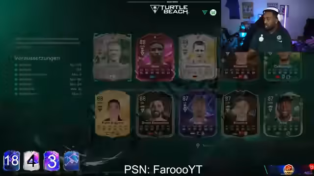 00:36:51Der Streamer ändert die Vorgehensweise, wie er mit Zuschauern in Kontakt tritt, und fordert sie auf, ihre PSN-Namen in den Chat zu schreiben, wenn sie möchten, dass er ihrem Spiel beitritt, insbesondere wenn sie Eikepacks haben. Er betont, dass er nicht mehr einfach so beitreten wird, sondern eine explizite Einladung mit dem Hinweis auf das vorhandene Pack erwartet. Der Streamer schaut sich ein zufälliges Pack an, um zu zeigen, dass diese oft schlecht sind, und öffnet ein Abwehrreihen-Boost-Profi-Wahlpack, obwohl er weiß, dass es wahrscheinlich schlecht ist. Er zieht Basis-Icons und Heroes und äußert seine Enttäuschung. Es wird diskutiert, ob man Hero Mascherano in Evos verwenden kann. Der Streamer öffnet ein 80+-Pack und ist enttäuscht über das Ergebnis. Er betont, dass Zuschauer in den Chat schreiben müssen, welches Pack sie haben und wie ihr PSN-Name ist, damit er beitreten kann. Er lehnt es ab, einen Zuschauer zu entblocken, da jede Handlung Konsequenzen hat.