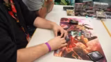 02:41:48Nach dem Contest führt der Moderator einen Spaziergang durch die Tabletop-Halle der Polaris durch. Dort werden handgefertigte Produkte wie 3D-gedruckte Miniaturen, Würfelbeutel, Brettspiele und Fantasy-Dioramen vorgestellt. Der Moderator betont die Kreativität und die handwerkliche Arbeit vieler Aussteller und gibt Einblicke in die Vielfalt der angebotenen Produkte. Er erwähnt auch die Möglichkeit, an Tischen direkt Tabletop-Spiele zu erleben.