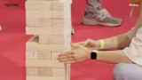 Intensiver Verlauf des Riesen-Jenga-Spiels