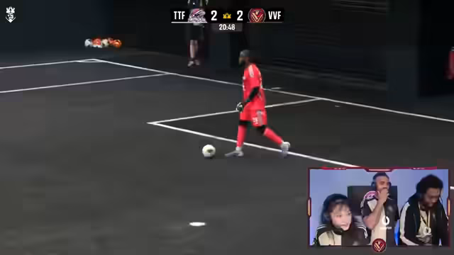 00:21:09Im weiteren Verlauf der zweiten Halbzeit werden die Gamechanger-Karten aktiviert. Papa Platte zieht eine „Suspension“-Karte, was zu einem Spielerfehler führt. Daraufhin nutzt das eigene Team die daraus resultierende Unterzahl und erzielt ein Tor. Nach einem starken Konter steht es plötzlich 2:1. Das Spiel kippt in den letzten Minuten, als ein Tor durch einen vermeintlichen Wechselfehler der Gegner nicht anerkannt wird. In der hektischen Schlussphase verliert das Team jedoch die Führung und unterliegt am Ende mit 3:2.