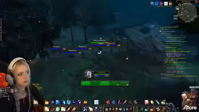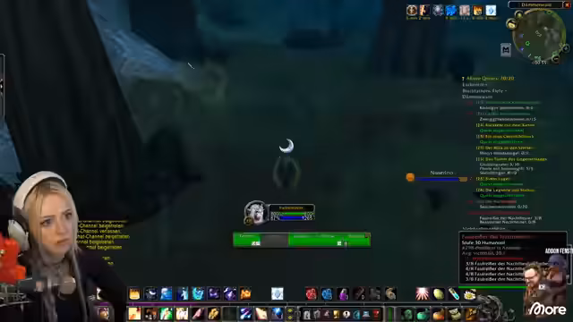 06:06:17Die Streamer arbeiten mit anderen Spielern zusammen, wie zum Beispiel Noserino und Miau. Gemeinsam versuchen sie, verschiedene Quests abzuschließen, was auf eine starke Gruppe hinweist, die auch etwas höher gestufte Gegner bewältigt. Die Herausforderung, eine gefährliche Quest mit einem Level 31-Elite-Mob zu meistern, wird offen angesprochen und als risikoreich, aber machbar angesehen.