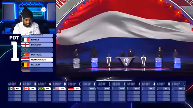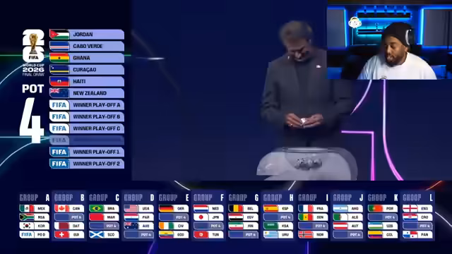 02:03:35Die Live-Auslosung für die FIFA Weltmeisterschaft beginnt in Washington D.C. mit der offiziellen Präsentation und diversen Statements von Persönlichkeiten wie Tom Rinaldi und Rio Ferdinand. Die erste Gruppe, Deutschland, wird gezogen und landet in Gruppe E mit Ecuador, Costa Rica und der Elfenbeinküste. Der Streamer analysiert die Gruppen und sieht für Deutschland starke, aber machbare Gegner. Die Auslosung läuft nach dem Prinzip, dass Teams aus derselben Kontinentalzone nicht in einer Gruppe sein dürfen, mit Ausnahme europäischer Teams.