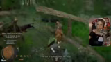 04:02:40Nach der Lösung des Rätsels kehrt der Streamer ins Dorf zurück, wo er eine Kopfgeldmission angenommen hat. Sein Ziel ist es, einen gesuchten Gesetzlosen namens Jeffrey zu finden und festzunehmen. Auf dem Weg dorthinter interagiert er viel mit der Welt: Er streichelt Hunde, hebt Tiere und Gegenstände auf, findet neue Rezepte fürs Kochen und hat seinen ersten Kampf mit Banditen, bei dem er sogar einen Igel als Waffe einsetzt.