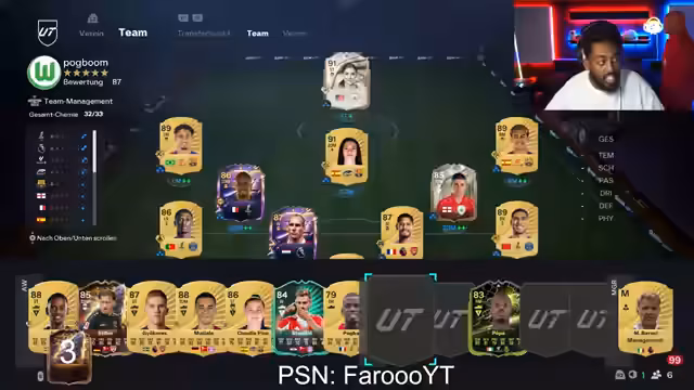 02:46:30Um 19 Uhr wurde das neue Hero Pack offiziell angekündigt, mit einer Maximalbewertung von 86 Basis und einem 12th Week Upgrade. Die Community diskutierte die Preise und Inhalte, verglichen mit vorherigen Versionen, die ebenfalls 85 und 86 Bewertungen hatten. Der Streamer öffnete mehrere Shop-Packs, bevor er zu den Hero-Packs überging, und zeigte erste Reaktionen auf Walkouts und Spielerkarten wie Luis Diaz, Caicedo und Bruno. Dabei wurden sowohl Enttäuschungen als auch spannende Züge wie ein Doppel-Walkout mit Kunde und Patri diskutiert, was zu intensiven Reaktionen im Chat führte.