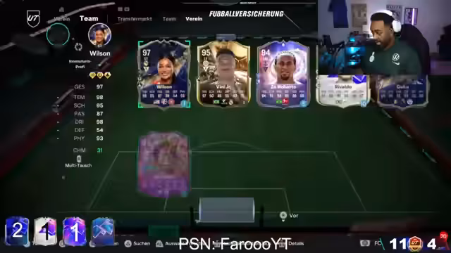 03:12:51Es wird diskutiert, ob man Dembélé für 1,1 Millionen Coins kaufen soll, was verneint wird. Raffinia wird als bessere Option für SBC angesehen, und Rodri wird als einer der besten Spieler im Spiel gelobt. Der Streamer sucht nach einer SBC, um Dupies abzugeben. Es wird festgestellt, dass es keine andere SBC gibt, die man machen kann, wenn man Hullit nicht macht. James Madison wird als nicht geile Karte bezeichnet. Es wird überlegt, ob man Philippin Pass holen soll, aber der Pick wird als nicht gut empfunden. Das 82+ Pack wird als besser angesehen. Revalu wird getestet. Es werden Lucio und Raoul gezogen, die getestet werden müssen. Der Name Archie Grey wird mit der Serie Riverdale in Verbindung gebracht. Der Streamer will eine SBC machen, um etwas zu testen. Es wird festgestellt, dass man für ein Team of the Week 6 90er abgeben muss. Es gibt ein Mikrowellen-Föhn-Geräusch und Verbindungsprobleme. Der Streamer wird gefragt, ob er Rolette für 5 Millionen machen soll, was er bejaht. Es wird festgestellt, dass der Verein leer geht. Der Streamer macht Rolette offiziell und dankt Mike für die aufbauenden Worte. Der 93er wird als nicht spielbar empfunden, da er keinen Pass-Paste hat. Es wird überlegt, ob man Dembélé machen soll, was verneint wird. Es wird gefragt, welche Playstation für Alvarez Birthday Hunter geeignet ist. Der Streamer will Lucio testen und gibt ihm Anchor. Rivaldo bekommt Hunter auf links. Es wird gefragt, ob schon jemand Holt gezogen hat. Der Streamer will Kane testen und fragt nach seinem Preis. Grey ist Extinction bei 190k und wird gekauft. Kane, Rollet und Rivaldo werden gekauft. Radimi kann nicht auf dem rechten Flügel spielen. Kane, Rivaldo, Wirtz und Holt werden getestet. Holt bekommt Shadow und Lucio bekommt Kette Liste. Es wird geprüft, ob Rollt genauso gut ist wie Rodry.