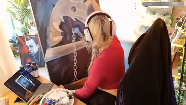 00:18:49Der Stream beginnt mit der Vorstellung des aktuellen Projekts: einem Invincible-Motiv aus World of Warcraft, das als Acryl-Bild auf einer 70x100 cm Leinwand entsteht. Es wird als sehr grobe erste Schicht beschrieben, bei der der Maler das Design skizziert, um ungefähre Positionen und Farben zu bestimmen. Gezeigt werden Hintergrundbilder, um den Stil und Vibe des Werkes zu verdeutlichen. Der Maler erklärt, dass er ohne Vorskizze gearbeitet hat, was zu Proportionsfehlern führte und er daraufhin alles übermalen musste. Dies führt zu einem zentralen Punkt: Malerei verläuft oft in mehreren Schichten und Ebenen, die sich im Laufe des Prozesses verändern. Eine wichtige Technik, die er demonstriert, ist das Einteilen der Leinwand in unregelmäßige Kästchen, um Ankerpunkte für die Proportionen zu haben, was besonders bei komplexen Motiven wie Invincible hilft.