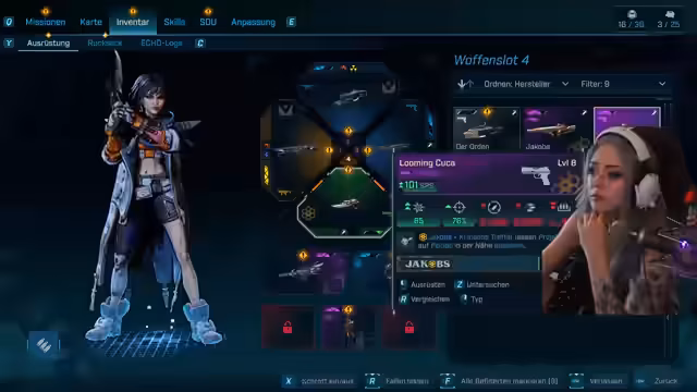 06:46:15Nach intensiven Kämpfen und dem Sammeln von viel Loot diskutiert die Streamerin die的游戏机制, insbesondere den 10%-Geldverlust beim Tod, der finanzielle Verluste drastisch erhöht. Sie bittet die Chat-User um Ratschläge für Builds und erkundet die Welt mit ihren Freunden. Es werden technische Aspekte wie das Positionieren von Modulen und die Handhabung eines vollständigen Inventars angesprochen. Auch die Frage, ob man mit zufälligen Spielern online spielen kann, wird thematisiert, wobei sie bestätigt, dass sie bisher nur im abgesprochenen Freundeskreis spielt.
