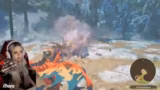 04:58:26Die Erkundung wird fortgesetzt, mit dem Ziel, zum Aussichtspunkt zu gelangen und Pflanzen zu looten. Spielerisch stellt sich heraus, dass nicht alle Höhlen zugänglich sind. Die Sprachoptionen des Spiels werden erwähnt, und es besteht die Wahl zwischen japanischer und englischer Synchronisation. Der Kampf gegen ein starkes, mit Rüstung ausgestattetes Campen beginnt. Es kommt zu einem kritischen Kampf, bei dem der Spieler vergiftet wird und ein Leben verliert, aber knapp überlebt.