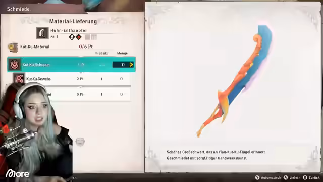 05:09:56Nach dem Kampf wird der Schnellreise-Punkt genutzt, um zur Basis zurückzukehren. Dort wird der Schmied aufgesucht, um neue Waffen zu erstellen und bestehende zu verbessern. Der Spieler ist begeistert von den kreativen Waffendesigns, insbesondere von einem Huhnenthaupt. Parallel dazu werden zahlreiche Monster-Eier in der Basis ausgebrütet. Die schlüpfenden Monsties erhalten individuelle, oft humorvolle Namen durch den Chat.