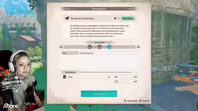 09:02:34Die Streamerin spricht über ihre positiven Eindrücke von Monster Hunter Stories 3, das sie ohne große Erwartungen gespielt hat. Sie war überrascht, wie sehr sie das Spiel genießen konnte, da es sehr chillig ist. Sie beschreibt das Spiel als entspannend, da man Eier suchen, Monsties ausbrüten und trainieren kann. Sie überlegt, sich das Spiel zuzulegen, merkt aber an, dass sie bereits drei Spiele hat und ein neues Free-to-Play-Game bald erscheint.