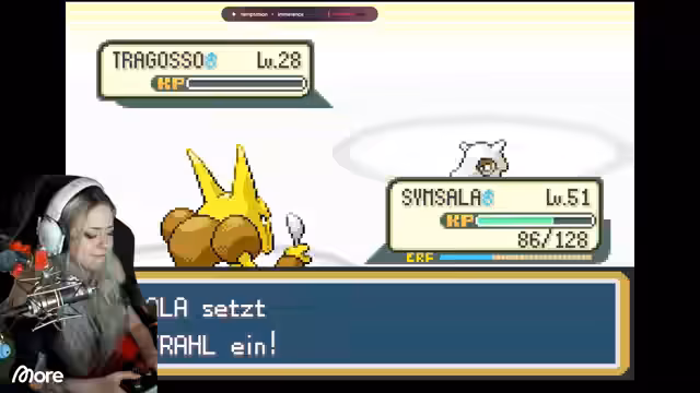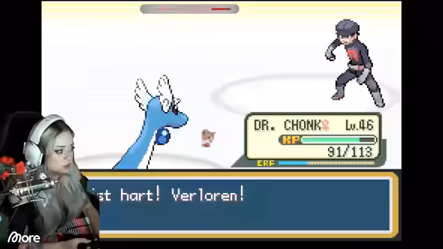 09:44:24Die Streamerin kämpft gegen das Team Rocket und besiegt den Boss Kali. Sie fängt ein neues Pokémon, ein Lapras, und benennt es Lastpass. Der Chat interagiert stark mit dem Gameplay, indem er Vorschläge für Pokémon-Namen macht und die Geschichte verfolgt. Nach dem Sieg wird der Streamerin von einer NPC ein Meisterball als Dankeschön überreicht, ein Item, das jedes Pokémon beim ersten Fangversuch einfängt.