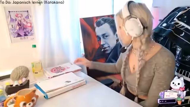 01:17:55Trotz Zeitdruck durch ausstehende Kalenderverpackungen und Studientests wird das Katakana-Training intensiviert. Es werden motorische Übungen mit leeren Tabellen durchgeführt, um Silben wie 'Ra', 'Ri', 'Ru', 'Re', 'Ro' zu verinnerlichen. Der Streamer experimentiert mit Farbcodierungen und assoziativen Merktechniken (z.B. 'Nanu' als Eselsbrücke). Die Lernschwierigkeiten werden offensiv thematisiert und mit Community-Tipps adressiert.