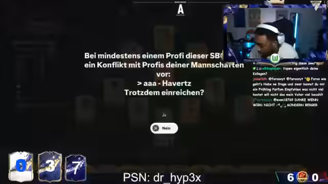 00:03:03Zu Streambeginn unterhält sich der Streamer mit dem Chat über verschiedene Themen, darunter auch persönliche Phasen wie Arbeitslosigkeit und seinen Penalife-Stil. Er äußert sich über seinen ungeliebten Haarschnitt und seine lange Anreise, die seit 9 Uhr morgens andauert. Auch spricht er seine Vorfreude auf die FIFA Weekly League an, in der er bereits 6-0 steht, und startet den Stream direkt mit einem Timeout aufgrund von rassistischen Kommentaren im Chat.