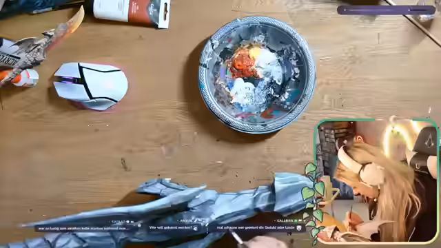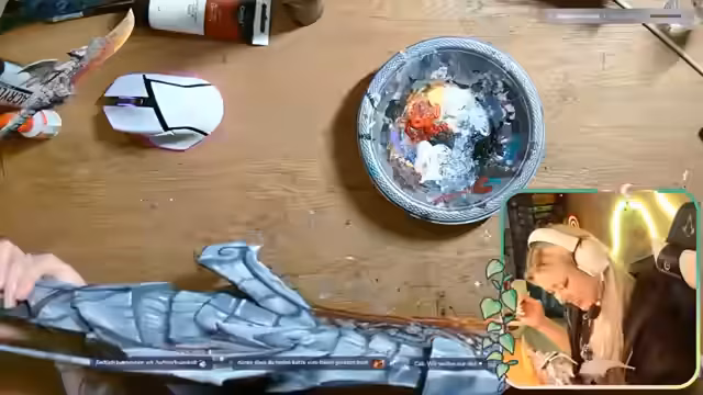00:16:11Der Fokus des Streams liegt auf dem kreativen Gestalten einer Monster Hunter-Waffe. Es wird gezeigt, dass bereits Vorarbeiten getätigt wurden und die Waffe aus zwei Teilen besteht, welche eine Keule bilden. Es werden Details zu den Materialien wie Acrylfarben und einem 3D-gedruckten Objekt erwähnt. Der Streamer arbeitet langsam und sorgfältig an dem aufwendigen Projekt und plant im Anschluss, die Teile zusammenzufügen.