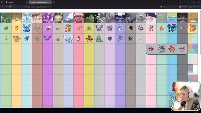 01:25:08Der Streamer arbeitet sich systematisch durch die Pokémon-Kategorien der Tierlist. Bei der Auswahl zeigt er eine starke Vorliebe für Charaktere mit süßer Story oder ansprechendem Design. So wählt er Glumanda wegen seiner rührenden Entwicklung, Lapras aus nostalgischen Gründen und Pikachu als leichteste Entscheidung. Bei schwierigeren Kategorien wie Wasser- oder Pflanzen-Pokémon muss er lange überlegen, entscheidet sich aber letztlich oft für ästhetisch ansprechende Optionen wie Skalabra oder Foli-Purba.