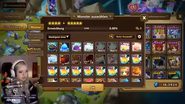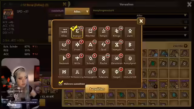 02:51:46Der Streamer widmet sich dem Aufwerten von Runen, wobei unterschiedliche Boni wie Angriffsbonus, Krittrate und Geschwindigkeit verglichen werden. Es werden Quests erwähnt, die das Aufwerten von Runen erfordern. Das Erwecken von Monstern wie Yeti ist ein weiteres Thema, wobei bestimmte Ressourcen wie Pro-Essenzen benötigt werden. Auch das Verkaufen von Monstern wird in Betracht gezogen, um Platz für neue zu schaffen.