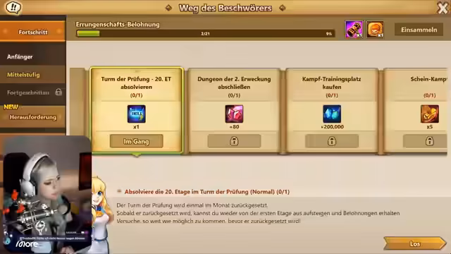 01:35:40Der Stream konzentriert sich auf das Spielen von Summoner's War. Die Streamerin erklärt die aktuellen Ziele, die sie im Spiel erreichen möchte, wie zum Beispiel das Abschließen des Anfängerfortschritts und das Freischalten eines Net4-Monsters. Sie beschreibt die verschiedenen Quests und Sammelobjekte im Spiel und zeigt, wie sie mit der Community zusammenarbeitet, um diese Ziele zu erreichen. Sie ist motiviert und freut sich über die Unterstützung der Community während des Gameplays.