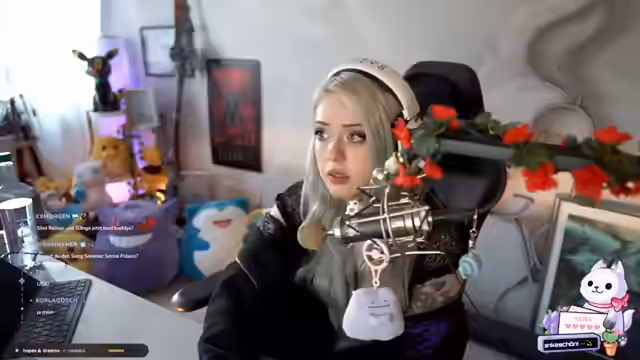01:27:01Die Streamerin berichtet von ihren Erlebnissen auf der Lahn, wo sie drei Kilogramm abgenommen hat und sich nur von Pizza, Snacks und Red Bull ernährt hat. Sie fragt die Community nach deren Go-To-Snacks für LAN-Partys, Gaming-Marathons oder lange Autofahrten. Die Community reagiert mit vielen Vorschlägen, von Bounty über Kekse bis hin zu veganen Alternativen. Die Streamerin zeigt sich offen gegenüber veganen Optionen, hat aber auch ihre Vorlieben, wie zum Beispiel veganen Fleischsalat von Pops.