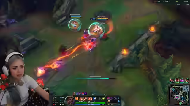 03:10:46Die Streamerin spricht über anfängliche Probleme mit Leak und die Notwendigkeit, die Augen richtig zu machen. Sie analysiert die Champion-Auswahl der Gegner, darunter eine gesperrte Mel, und erwähnt, dass sie Mel auf ihrem Smurf Level 6 hat. Sie beschreibt Mel als einen gemeinen Support, der viel Schaden macht, und erwähnt, dass sie in letzter Zeit Zyra als Main gespielt hat. Im weiteren Verlauf des Spiels gibt es Schwierigkeiten mit dem Early Level 2, da ein Minion nicht getroffen wird. Die Streamerin kommentiert den Spielverlauf, einschließlich eines erfolgreichen First Kills und weiterer Taktiken. Sie signalisiert, dass sie den Blu-Rake machen will und kommentiert die Bewegungen des Gegners. Es folgen weitere Spielszenen, in denen die Streamerin Mana-Probleme hat und versucht, das Team zu unterstützen. Sie kommentiert die Hooks des Gegners und die Notwendigkeit, Mana zu sparen.