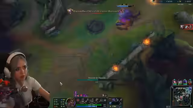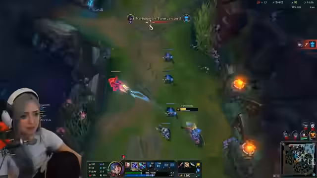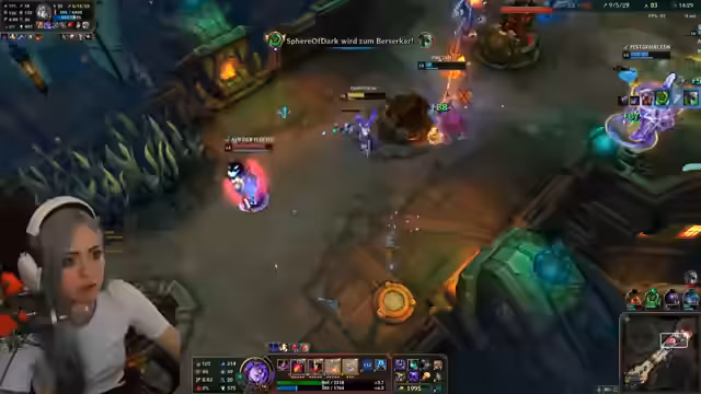 02:38:08Im laufenden Spiel agiert der Streamer als Support für eine Vayne. Er versucht aktiv, ihr zu helfen, indem er mit seiner E die gegnerischen Champions fernhält und ihr so Kill-Möglichkeiten gibt. Obwohl seine Absichten gut waren, stirbt die Vayne letztendlich in einer von ihr selbst eingeleiteten Situation. Der Streamer analysiert das Missverständnis und denkt darüber nach, wie er sie hätte retten können, während er gleichzeitig den Mangel an räumlichem Bewusstsein bei der Vaine kritisiert.
