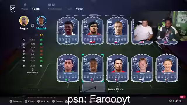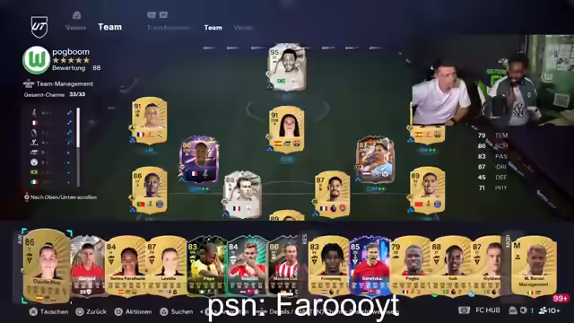 01:16:00Es wird über den Kontakt zu ehemaligen Fußballkollegen gesprochen, insbesondere zu Kenan Yildiz, mit dem der Streamer früher in der Klasse war und jetzt bei der Kings League spielt. Es wird über Khan Bengi gesprochen, mit dem der Streamer auch in Augsburg gespielt hat. Es wird über Pack-Öffnungen gesprochen und darüber, welche Spieler gezogen werden. Es wird über die Walkout-Animationen im Spiel gesprochen und wie aufregend es ist, in den ersten Wochen Walkouts zu ziehen. Es wird überlegt, wie man die Walkout-Animationen noch verbessern könnte, zum Beispiel mit Doppel-Walkouts. Es wird überlegt, warum so viele Leute Pina spielen und wie nervig das in der Weekend League sein kann. Es wird über die Bildschirmzeit des Streamers gesprochen und warum er Serien lieber auf dem Handy schaut als auf dem Fernseher.