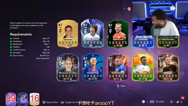 01:10:22Der Stream wechselt zum Thema Fantasy Team 2 im FIFA Ultimate Team. Es wird die Schwierigkeit angesprochen, die nötigen Upgrades für Spielerkarten zu bekommen, und die Kritik geäußert, dass die aktuelle Woche inhaltlich 'toter' ist. Der Streamer zeigt sich gespannt auf die neuen Premier-League-Upgrades, die für den nächsten Tag erwartet werden, und diskutiert über die Pläne für seine eigenen Spieler-Upgrades.