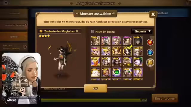 01:33:12Mit 50 gesammelten Schriftrollen beginnt der Streamer mit Gacha-Beschwörungen. Er zieht verschiedene Monster wie Lamiella, Brownie-Markier, Triade und Sylphide. Die Reaktionen der Community sind überwiegend positiv, besonders bei seltenen Monstern. Der Streamer diskutiert die Nützlichkeit der gezogenen Monster für PvP und PvE. Er erwähnt sein Pech beim ersten Stream und den besseren Erfolg bei diesem Stream. Der Fokus liegt auf dem Farmen und Leveln der Monster.