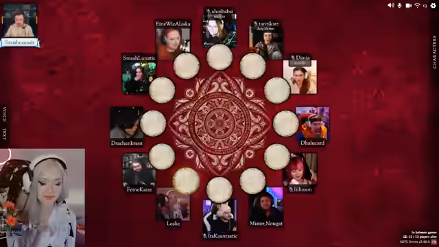 01:08:40Kurz vor dem Start der "Blood on the Clocktower"-Runde kam es zu erheblichen technischen Problemen beim Einrichten des Stream-Together-Events. Die Streamerin hatte Schwierigkeiten, ihre Kamera und ihr Mikrofon in die gemeinsame Übertragung zu integrieren. Obwohl sie die Kamera in ihren Einstellungen freigegeben hatte, wurde sie im Stream-Together-Tool nicht korrekt angezeigt oder erkannt. Auch ihr Mikrofon funktionierte anfangs nicht wie erwartet, was zu Verwirrung und Frustration führte. Sie musste mehrmals die Website neu starten und verschiedene Kameraeinstellungen ausprobieren, um das Problem zu beheben. Trotz der anfänglichen Schwierigkeiten und der leicht chaotischen Situation, in der die Avatare der Teilnehmer übereinander gestapelt wurden, gelang es schließlich, die technischen Hürden zu überwinden und alle Teilnehmer für die Spielrunde zu versammeln.