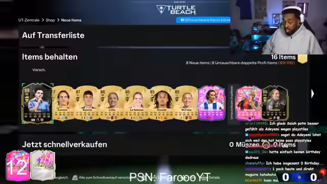 02:35:04Es wird ein Pack geöffnet, um das Team 2 zu testen, mit dem Ergebnis, dass Harland gezogen wird. Der Streamer lädt Zuschauer ein, ihn für Shop-Packs einzuladen und die schlechten Packs vorher zu öffnen. Es folgt eine Analyse des Foot Birthday Teams, wobei Spieler wie Griezmann, Gabriel Martinelli, Sam Care, Julian Alvarez und Musiala hervorgehoben werden. Besonders gelobt wird Serie Emmery für seine hohen Werte. Es wird festgestellt, dass er offiziell die beste Karte im Spiel ist. Es wird überlegt, welche Playstyles man den Spielern geben soll. Es wird auch überlegt, welche Playstyles man den Spielern geben soll. Es wird auch überlegt, welche Playstyles man den Spielern geben soll. Es wird auch überlegt, welche Playstyles man den Spielern geben soll.