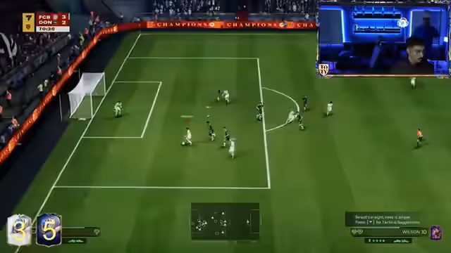 06:40:35Während eines Spiels analysiert der Streamer eigene und gegnerische Defensivfehler detailliert. Er demonstriert, wie man nicht defensiv agieren sollte, indem man hektisch und unkoordiniert agiert und den Gegner unnötig Raum lässt. Er bekennt, dass er trotz guter Vorhersagen der gegnerischen Aktionen oft Tore kassiert und stellt die These auf, dass der Angriffsdruck in der aktuellen Weekend League defensiv schwieriger macht.