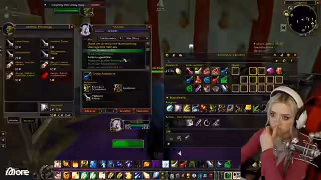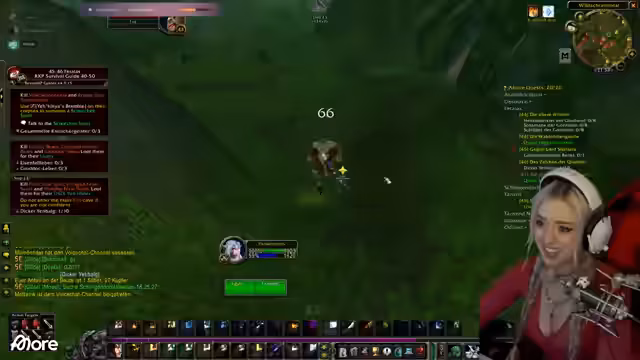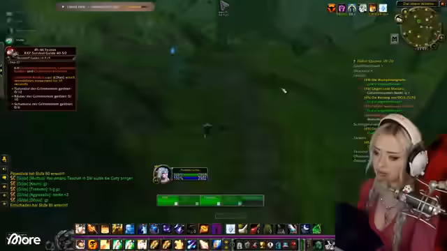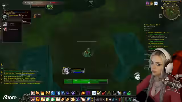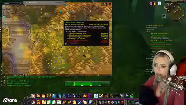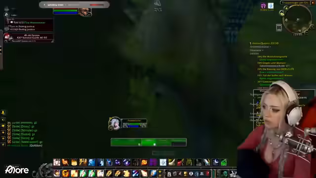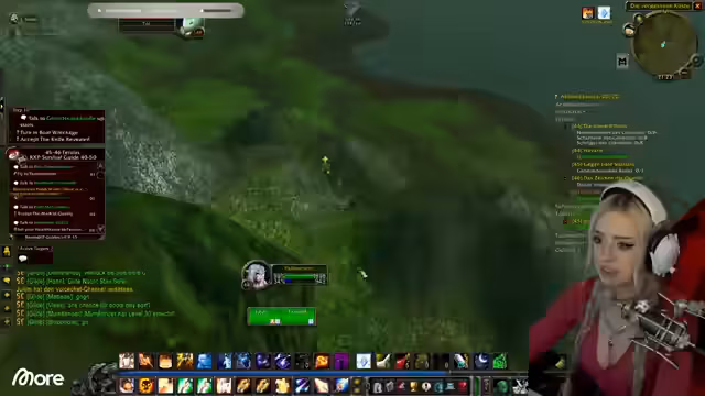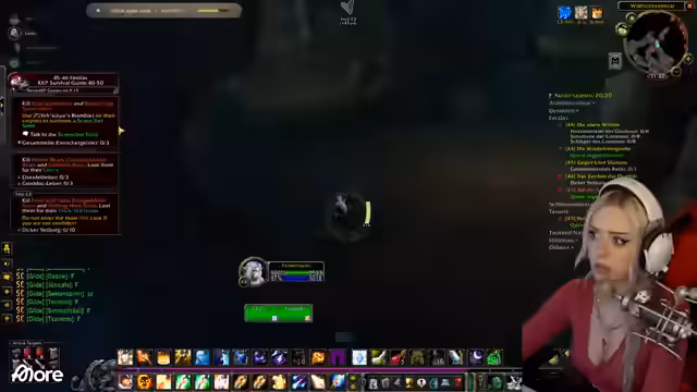 01:13:17Der Streamer berichtet von technischen Problemen: Die Kamera wird unscharf, und ein Neustart wird versucht, ohne Erfolg. Gleichzeitig geht es im Spiel weiter: Der Guide schickt ihn zum Schwimmen unter Wasser, wo er einen Ruhestein setzt und quests ausführt. Es folgt ein Gespräch über den Einfluss von Rested XP auf die Quest-Auswahl (z. B. Schwimmen statt Boot fahren) und eine Diskussion mit Sascha, der das Addon noch nicht aktiv hat. Der Streamer verteidigt seine Entscheidung, es weiterhin ohne zu nutzen, betont aber die Effizienz für begrenzte Zeit und den Druck der Gilde.