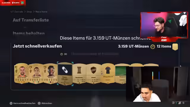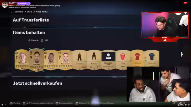 00:52:10Streamer diskutiert über die FIFA-Bewertungen und erwähnt Liverpool-Trainer Jürgen Klopp mit einer 79er-Bewertung, was er für absurd hält. Er vergleicht Spieler wie Ulysse und erläutert das Münzsystem, bei dem 500 Euro Aufladung etwa einer Million Coins entspricht. Er betont, dass man immer etwas zieht, wenn man auflädt, auch wenn es nicht immer das Beste ist.