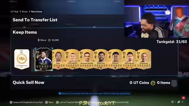 01:43:06Ein unangekündigter Gast erweckt das Interesse des Streamers. Es wird der Auftritt von Vinícius Junior von Al-Hilal thematisiert, der seit längerer Zeit im Team vorhanden ist, aber bisher nicht erwähnt wurde. Dies führt zur Diskussion, ob und wie Vinícius Junior in die anstehende neue Evo-Karte der aktuellen Saison passen könnte. Parallel dazu wird der Verkauf von Diaby für 122.000 Coins erwähnt und der Wunsch geäußert, eine Playstate-Karte zu erhalten. Schließlich wird die Rückkehr von San Maximilian als überraschendes Ereignis erwähnt, was zu einer unüberlegten Verkaufsentscheidung führt.