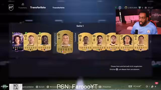 00:50:55Der Streamer analysiert den Transfermarkt und die Preisentwicklung verschiedener Karten. So wird vermutet, dass Finesse-Spieler aufgrund ihrer reduzierten Attraktivität im Wert steigen könnten. Spieler wie Kunaté und Marmushi werden gehalten, um auf zukünftige Preissteigerungen zu spekulieren. Ebenso gibt es kritische Äußerungen über die hohen Preise von Torhütern wie Gabriel, für die der Streamer nicht bereit ist, einen hohen Betrag auszugeben.