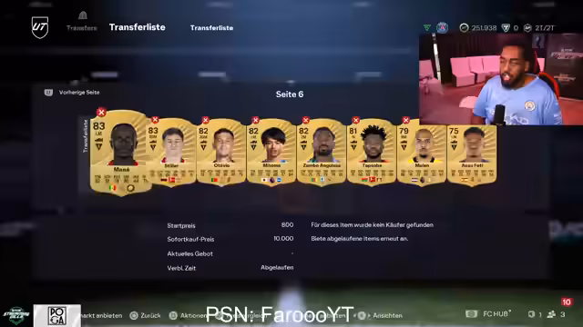 00:00:06Der Stream beginnt mit einem müde wirkenden Streamer, der über fehlende Rewards und Müdigkeit klagt. Ein Fokus des Streams liegt auf dem Handel von Spielern. So wurde Ginola für 3,2 Millionen gekauft und anschließend für 3,7 Millionen wieder verkauft, was einen Gewinn von 300.000 Coins einbrachte. Der Handel mit Karten wie Eto'o, der auf 2,7 Millionen steigen könnte, und die Marktentwicklung nach den Squad Builds Rewards, die den Markt explodieren ließen, werden diskutiert.