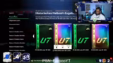 00:21:34Der Streamer plant eine Wette mit seinen Viewern, bei der er fünf Shop-Packs öffnet und hofft, eine TOTY oder TOTY-Icon zu ziehen. Die Wahrscheinlichkeit wird als sehr niedrig beschrieben. Er zeigt die Päckchen vor der Öffnung und bittet die Viewer, ihm bei der Entscheidung zu helfen. Es wird auch über die Eröffnung des Tages-Packs gesprochen, bei dem hoffentlich eine gute Karte ziehen wird.