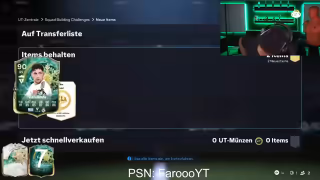 05:13:13Farooq beendet den Ronaldinho SBC nach etwa 30 Minuten und feiert die Animation sowie das Card-Design. Er diskutiert die Overpriced-Debatte, entscheidet sich aber aus Content-Gründen für die Fertigstellung. Parallel zieht er im letzten 400k-Pack überraschend Federico Valverde (im Wert von 1,1 Mio. Coins), was er als verdienten Ausgleich für frühere Enttäuschungen bezeichnet.