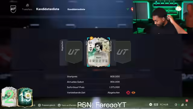 05:40:39Farooq diskutiert den rapiden Preisverfall von Spielerkarten wie George Best und Ronaldinho im FUT-Markt, was zu erheblichen Handelsverlusten führt. Er berichtet, dass George Best von 910k auf 900k Coins gefallen ist und Ronaldinho trotz seines Status als Icon-Spieler nur noch 6 Millionen Coins kostet. Farooq äußert Bedenken, dass die Preise weiter sinken könnten, insbesondere da viele Spieler ihre Packs öffnen und der Markt überflutet wird. Er entscheidet sich dennoch für den Kauf von George Best und plant, weitere Karten wie Cruyff zu testen, dessen Preis bei über 10 Millionen Coins liegt.