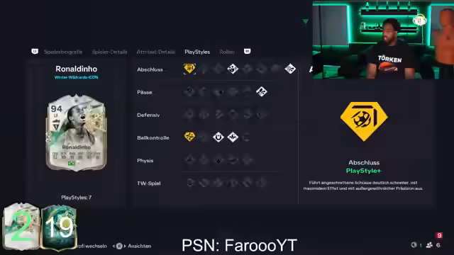 00:28:01Der Ronaldinho SBC wurde detailliert besprochen: Geschätzte Kosten von 800.000-850.000 Coins, kombiniert mit enttäuschenden Playstyles (kein Pass-Playstyle). Der Streamer riet davon ab, die Karte aus Meta-Gründen zu machen, empfahl sie aber für Spieler, die Ronaldinho aus Nostalgie nutzen möchten. Die Debatte im Chat spaltete sich – einige sahen Potenzial auf Linksaußen, andere kritisierten die eingeschränkte EVO-Kompatibilität. Letztlich entschied die Community per Abstimmung, dass der SBC trotzdem durchgeführt wird.
