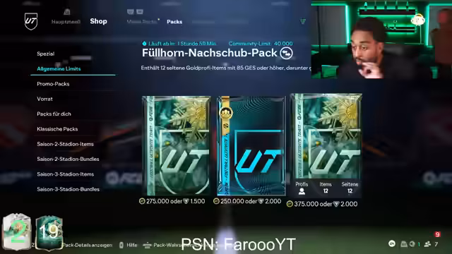 03:59:38Farooq reagiert auf das Ziehen von zwei Icons, insbesondere Jonatan Tah und Claudio Pizarro aus den Packs. Er diskutiert die Coin-Kosten für Spieler und ist erstaunt über die niedrigen Preise einiger Top-Karten wie Claudia Pina. Zwischenzeitlich kritisiert er die scheinbar willkürliche Verteilung der Pack-Gewichtung und äußert Unglauben über die Häufigkeit, mit der bestimmte Karten wie Pina gezogen werden.