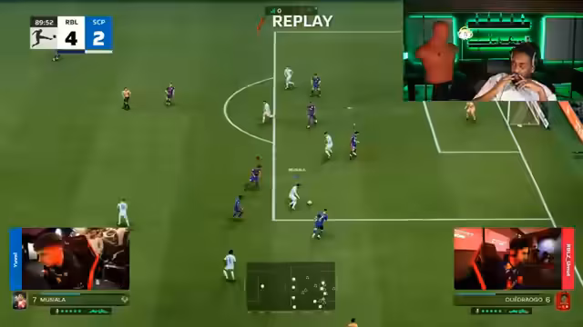 02:17:47Der Fokus liegt auf dem VBL-Turnier-Finale zwischen Bayern und Leipzig. Der Streamer kommentiert Foukas Spielstil, seine Dribbling-Fähigkeiten und strategischen Entscheidungen. Es wird auf frühere Matches gegen Gianluca und Lassada eingegangen, während parallel das reale Spielgeschehen mit Toren und Wendungen verfolgt wird.