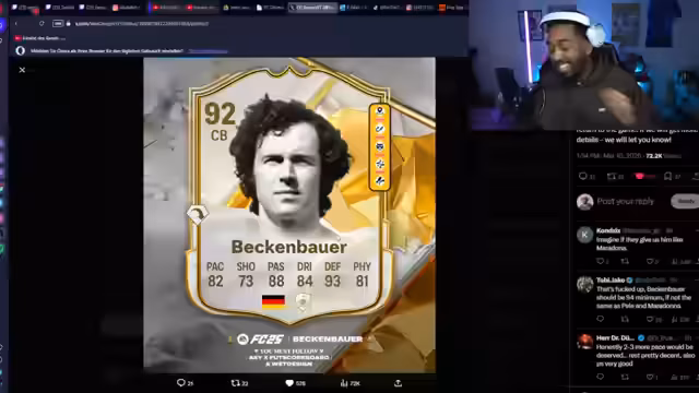 00:08:27Es werden bedeutende Ankündigungen für FIFA gemacht. Ein neuer Playstyle, namens Beckenbauer, wird offiziell mit einem Datum eingeführt. Zusätzlich wird ein großes Update und neuer Patch angekündigt, das auch die vorübergehende Einstellung der Weekly League zur Folge hat. Der Streamer betont, wie wichtig es ist, dass die Community diese Inhalte auf Twitch verfolgt, da sie nicht auf anderen Plattformen wie TikTok gezeigt werden.