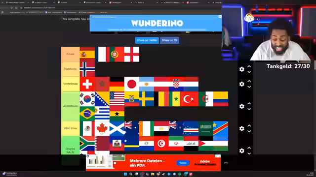 02:26:24Der Streamer erläutert, dass es bei seiner Tierlist nicht um eine perfekte Reihenfolge, sondern um eine Einschätzung der WM-Potenzial der einzelnen Nationen geht. Er nennt Bosnien als starken Achtelfinal-Kandidaten, warnt aber vor möglichen stärkeren Gegnern in späteren Runden. Auch Kanada sieht er trotz Heimvorteil nur als 16.-Finalist. Bei Brasilien äußert er sich kritisch über die aktuelle Teamstärke und schätzt die Schweiz stärker ein, während er für Vinicius Junior hohes Potenzial, aber auch Inkonstenz anmahnt.