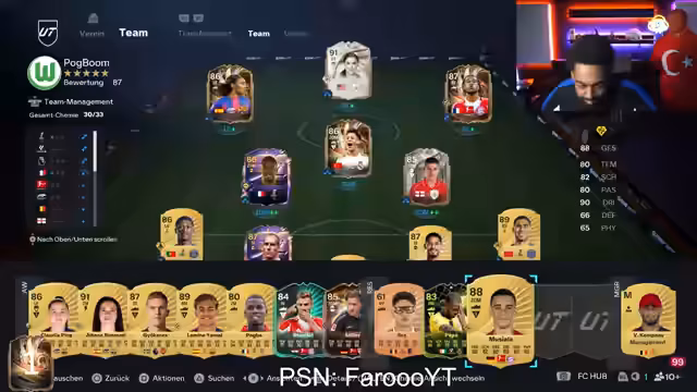 00:20:22Der Streamer und der Chat analysieren die Upgrades des neuen Teams of the Week (TOTW). Es werden konkrete Spieler und ihre Werte besprochen, z.B. Alvarez, Son, Rodman, Ulysse und Salma. Es wird spekuliert, wie teuer diese Karten werden, wobei Preise zwischen 200.000 und über 1.000.000 Coins genannt werden. Besonders hervorgehoben werden Playstyle-Änderungen, z.B. dass Olysee 'Technical' und einen Tempo-Bonus erhalten hat. Es folgt eine Diskussion, welche Karten am meisten gewünscht werden, mit Arda Güler und Iktiki als Top-Kandidaten.