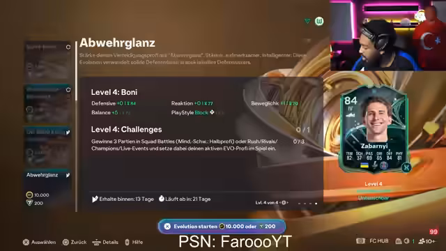 02:20:28Im Shop werden neue Promo-Packs vorgestellt, darunter ein 120k-Pack mit 20% Chance auf Rating-Reloaded-Karten und ein 50k-Pack mit 1% Hero-Wahrscheinlichkeit. Parallel wird eine neue Evo-Phase besprochen, die Spielern wie Singo oder Lukeba Pace- und Defensiv-Upgrades (z.B. +10 Pace, +6 Defense) gibt. Besonders hervor wird ein Evo für Kubase-Karten genannt, der als 'geil' und 'Pflicht' für RTG-Spieler bezeichnet wird.