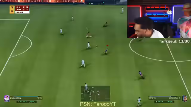 01:50:57Der Streamer analysiert sein aktives FIFA-Spiel, bei dem er knapp und mit Last-Minute-Toren gewinnt. Er bewertet die Performance seiner Spieler wie Wilson und Ronaldinho kritisch und diskutiert über die Bedeutung von 5-Sternen-Fähigkeiten und bestimmten Playstyles. Besonders frustriert ist er über Fehlpässe und defensive Schwächen, die zu Torchancen des Gegners führen.