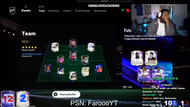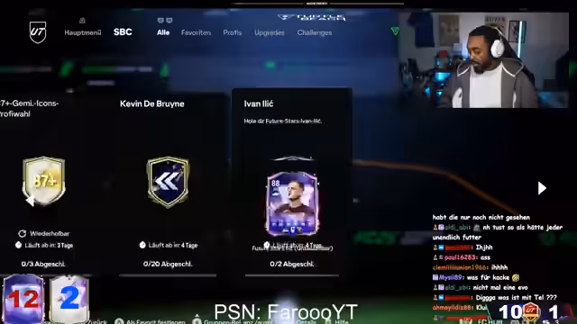 01:45:52Der Streamer öffnet Packs und zieht eine Future Stars Icon, Lippert, die verkaufbar ist. Die Freude ist groß, da dies einen erheblichen Coin-Gewinn bedeutet. Er feiert den Fund und die Believer im Chat. Die Coins werden für den Kauf von Maradona benötigt. Weitere Packs werden geöffnet, in der Hoffnung auf weitere Icons oder wertvolle Karten, um das Ziel, Maradona zu erwerben, zu erreichen. Es werden verschiedene Karten gezogen, darunter auch Inform-Karten, die vorerst behalten werden, in Erwartung eines Evo-Events. Der Streamer äußert die Hoffnung, durch den Verkauf der Karten genügend Coins für Maradona zu generieren.